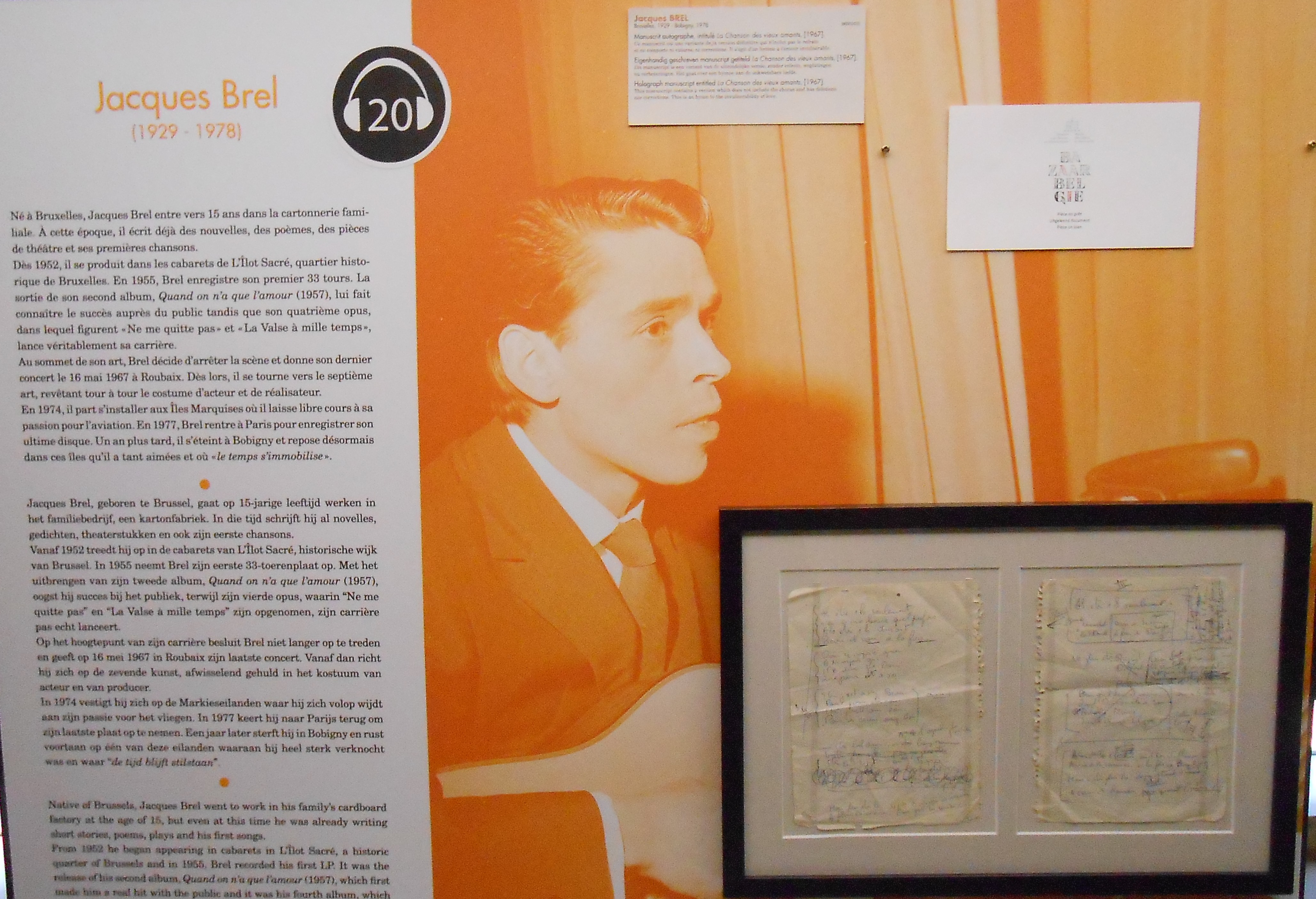 Revenons à nos moutons, d’autant que même Le Petit Prince, enfin, son auteur, avait des lignes manuscrites présentées dans les vitrines de ce musée où j’ai passé de très belles heures à découvrir les pattes de mouches écrits de personnalités plus ou moins connues (plutôt plus que moins), plus ou moins éloignées de notre époque (plutôt plus que moins), plus ou moins décédées (plutôt plus que moins), enfin je veux dire, pour là-plupart décédées, même si certaines sont encore de ce monde, comme Brigitte Bardot pour ne citer qu’elle !